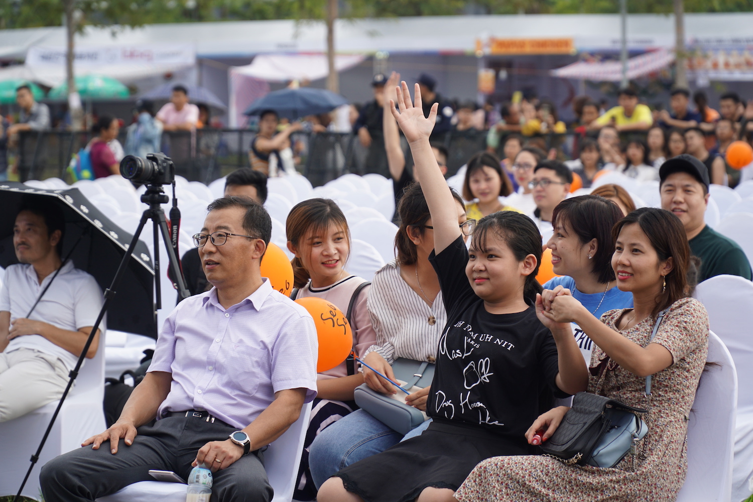관객들이 퀴즈에 열정적으로 참가합니다.