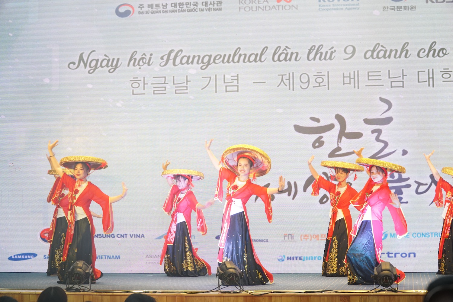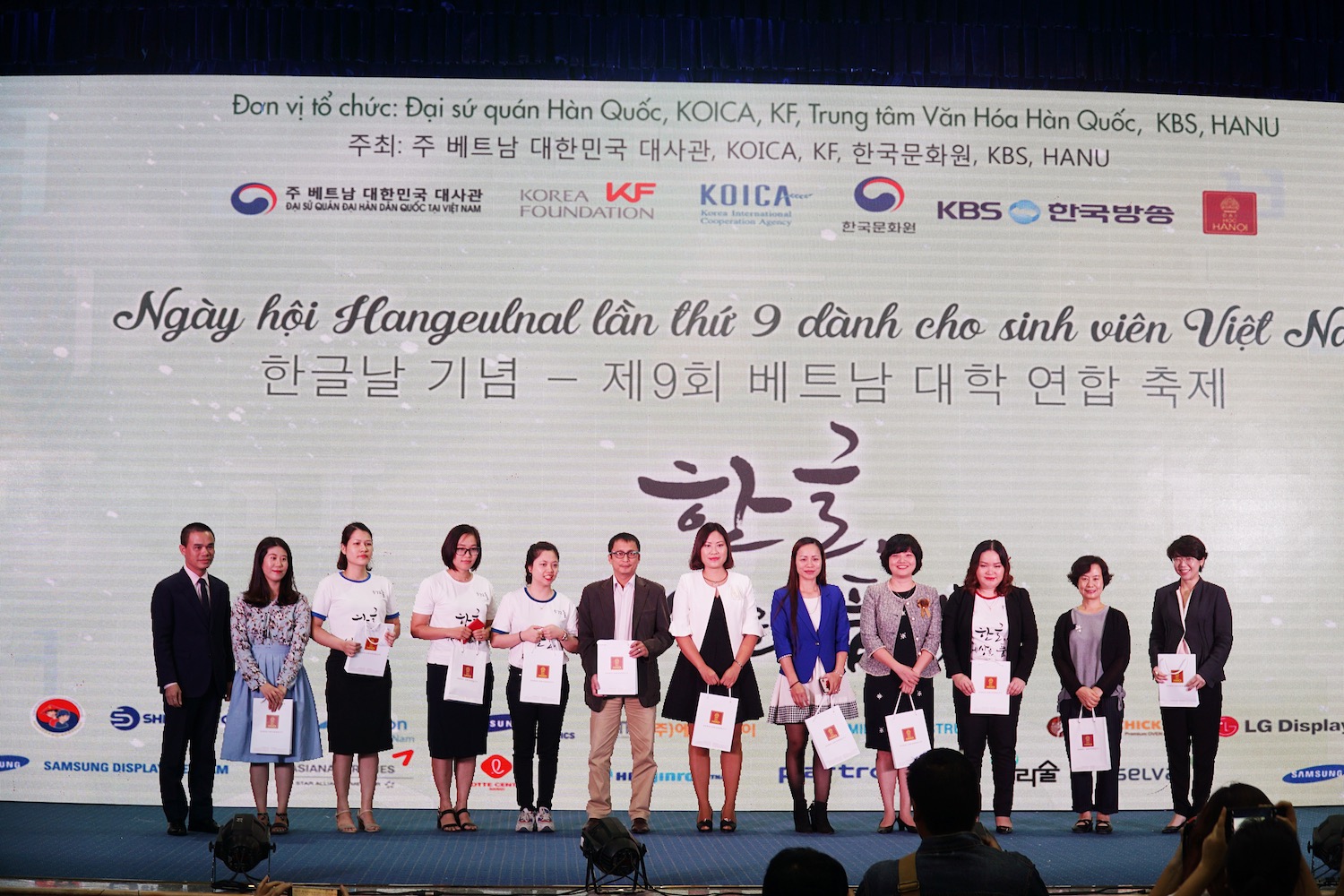 (VOVWORLD) - 10월20일 하노이대학교는 주베트남 한국 대사관, 한국방송공사 KBS과 공동으로 하노이대학교에서 2018한글날 축제를 개최했다. 이 번 축제에는 다낭 시. 후에 시, 타이 응웬 시, 그리고 하노이에 있는 14개의 대학교 한국어과에서 온 교수진과 대학생들이 흥미진진하게 참여했다.