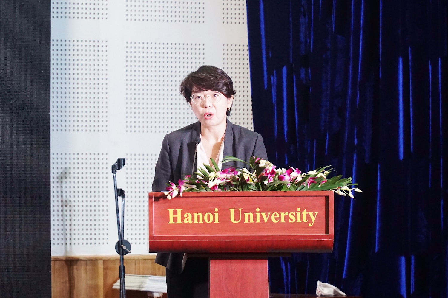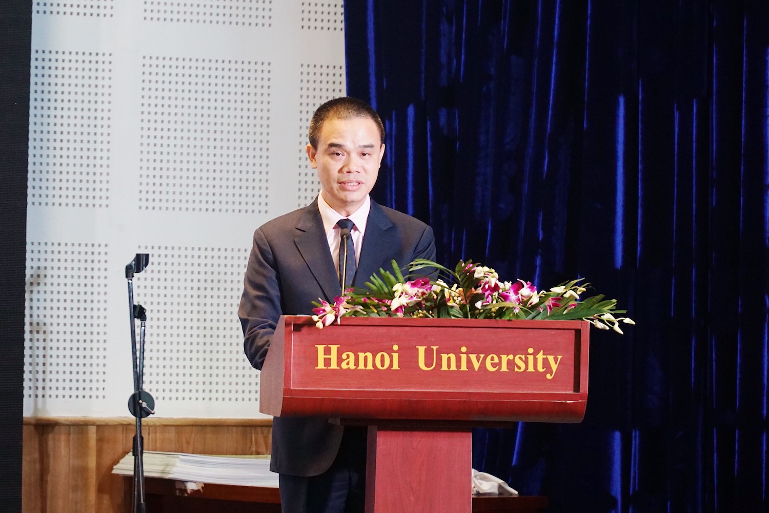 | 하노이 대학교의 총장인 응웬 반 짜오 (Nguyễn Văn Trào)는 축사를 연설합니다. |