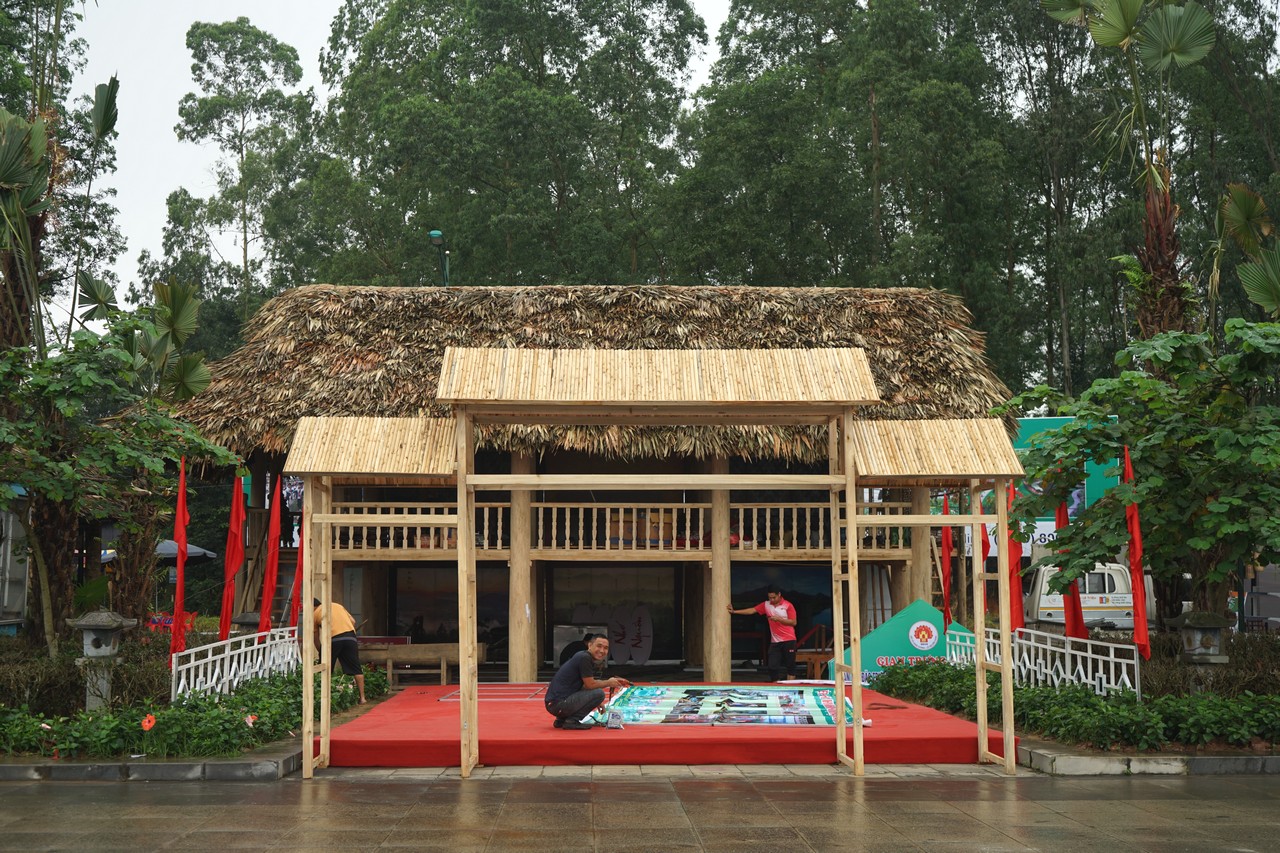 | 훙신사 축제는 성대하게 치루어진다. 이것은 또한 방문객에게 푸토 성 관광의 이미지를 홍보할 수 있는 기회이다. 참여 단체는 자신의 부스들을 신속하게 완성시키고 있다. |