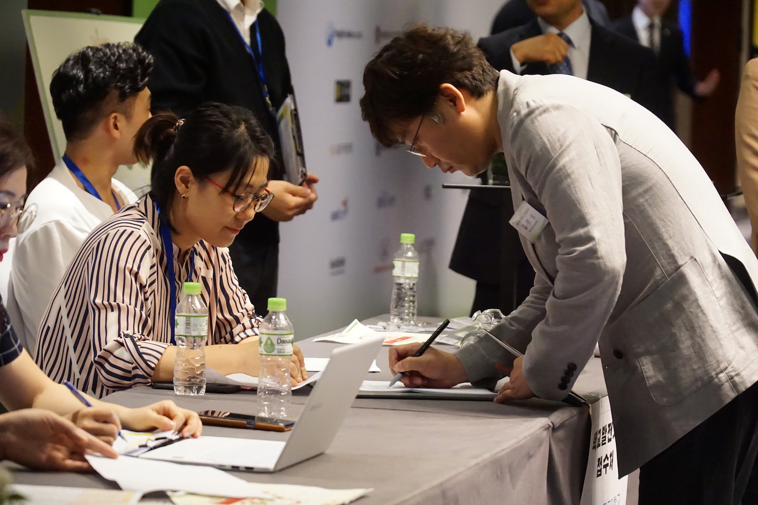 손님들은 체크인하고 있습니다.