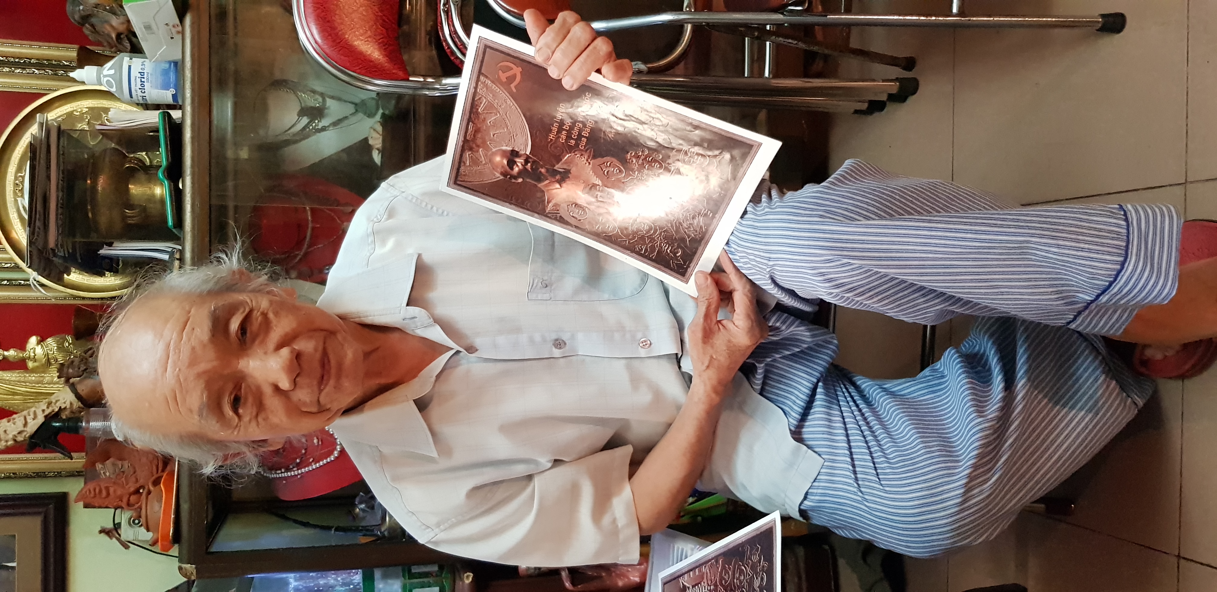 조각으로는 하노이 호찌민 국립정치대학원에 엄숙히 걸려 있는 ‘호찌민 주석, 당 및 간부 양성 사업’에 대한 2개의 작품을 꼽을 수 있다. 2개의 작품은 2015년 11월19일 베트남 스승의 날을 기념하기 위해서 하노이 인민위원회와 조국전선위원회가 선물한 것이다. 하노이 장인협회 장인들이 2년 동안 구리를 수공으로 조각하여 이 작품을 만들어 냈다. 조각 프로젝트를 주요 담당한 응우옌 응옥 쫑 (Nguyễn Ngọc Trọng) 장인은 다음과 같이 밝혔다.