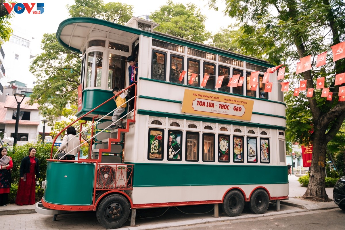 하노이 바딘(Ba Dinh)동 인민위원회가 전개한 '거리로 나온 유산' 모델인 '전차 노선 6번’의 벼∙곡식∙쌀’ 객차 (사진: 낌 리에우/VOV)