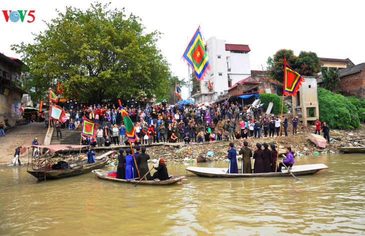 | Cau강에서 바라본 축제날의 Tho Ha마을 |