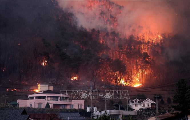한국에서 발생하는 심각한 산불 현장 모습 (사진: 베트남 통신사) |