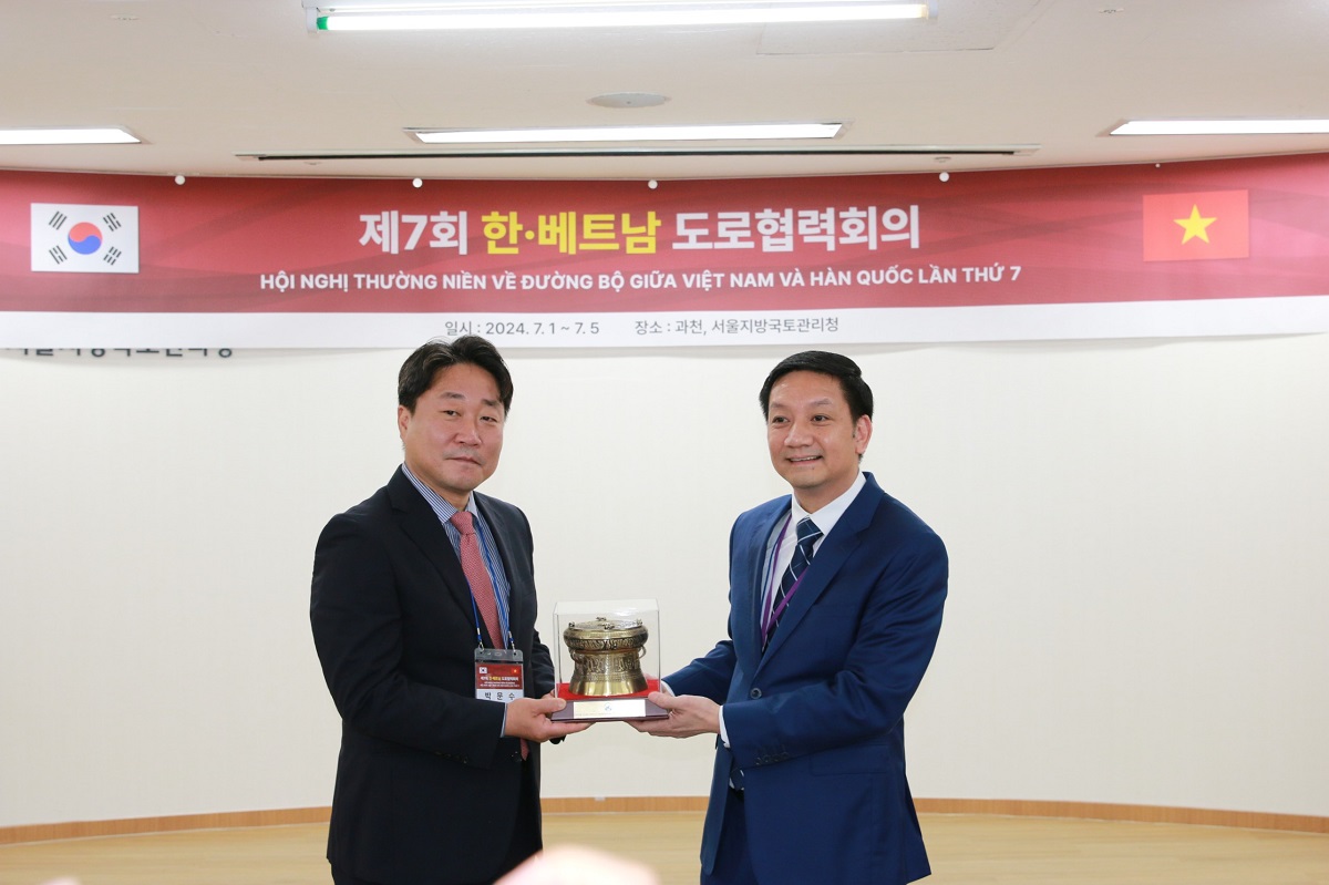 국토교통부 도로투자지원과 박문수 과장에게 기념 선물을 전달한 부이 꽝 타이(Bùi Quang Thái)
