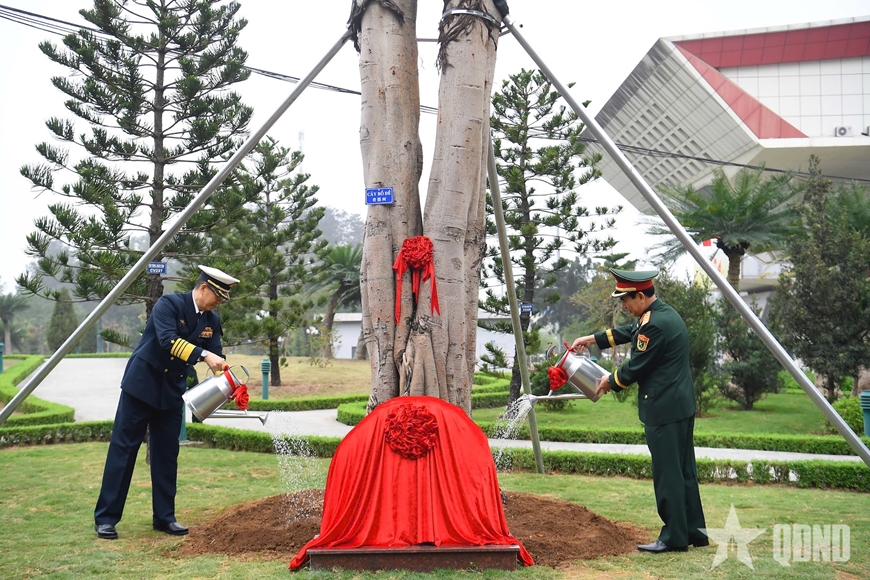 판 반 장 베트남 국방부 장관과 중국 둥쥔 국방부장은 함께 우호 나무를 심고 있다. [사진: qdnd] |
