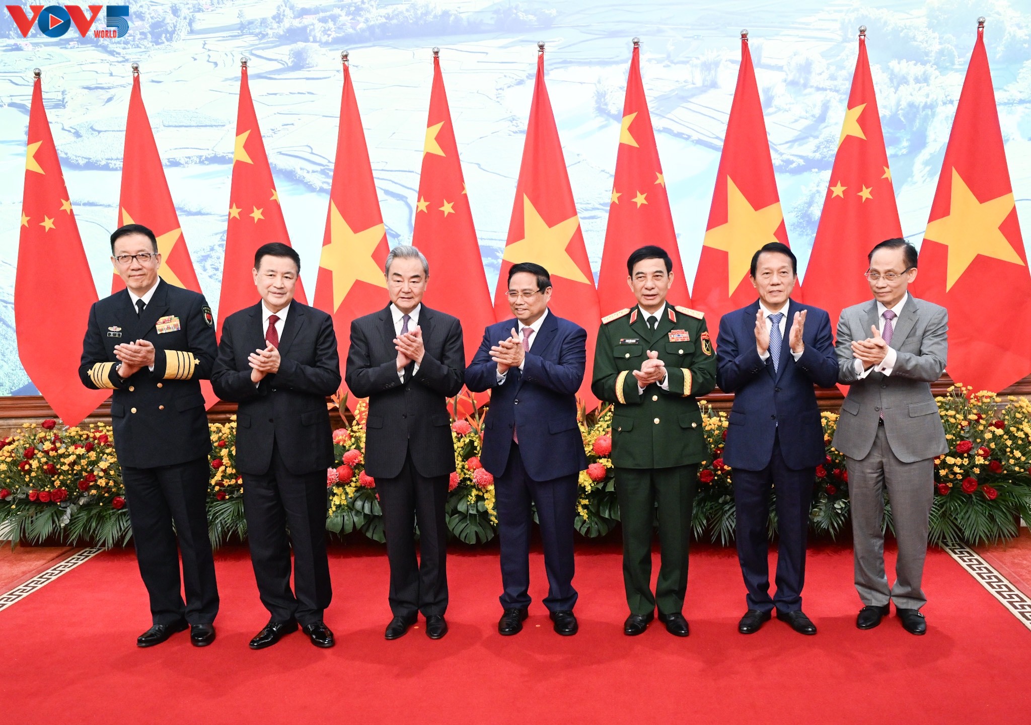 기념 사진을 찍는 양국 대표단 (사진: VOV) |