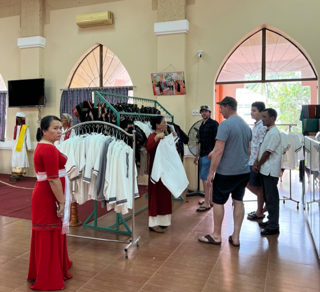 미응이엡 전통 직조 마을을 방문하는 외국인 관광객 [사진: 응옥 아인]