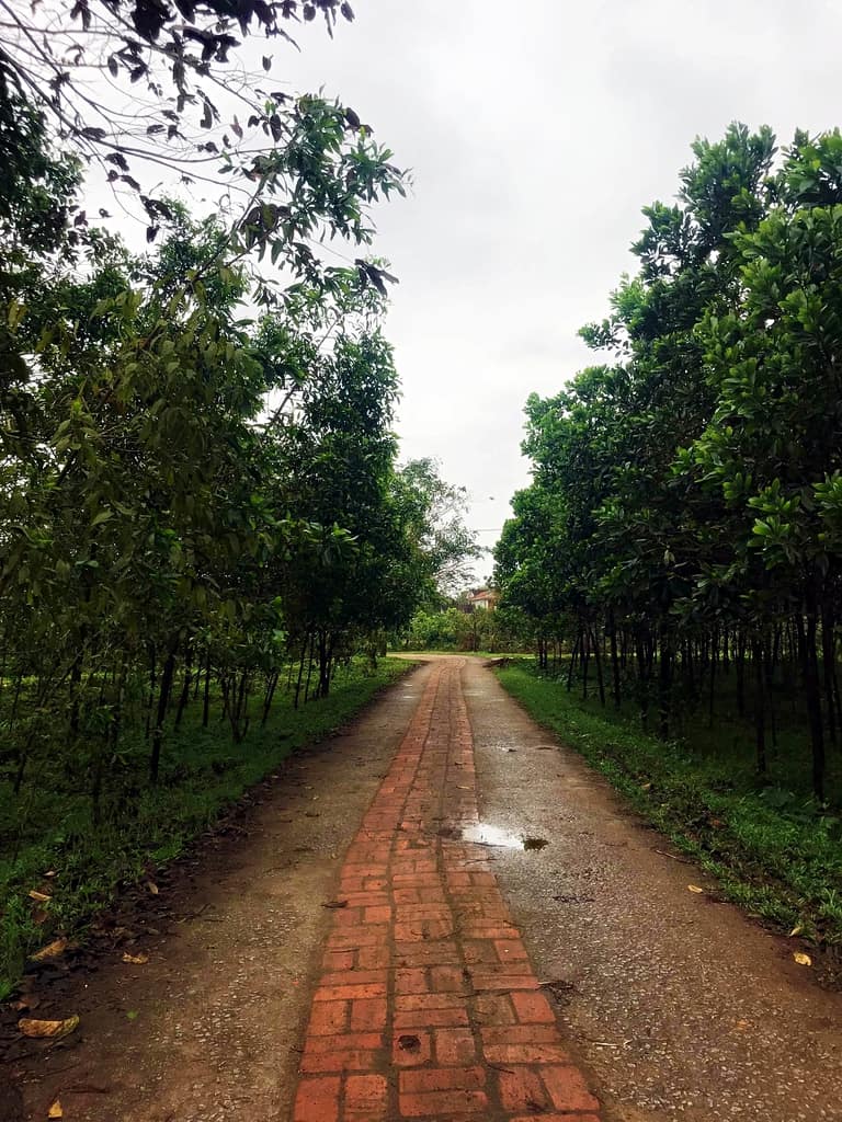 마을을 들어서면 가장 인상적인 것은 바로 수백 년 된 전통가옥들과 푸른 고수 나무들이 많이 들어선 정원들이다. 짱 (Tràng) 할머니의 집 앞에 백 년 이상의 일랑일랑 나무가 꽃 피고 소나무, 매화나무 등이 일 년 내내 그늘을 드리우고 있다. 이 마을의 너무나도 독특한 점은 벽돌 담장이나 정문이 없다는 것이다. 집들의 경계는 넓은 정원이나 잘 다듬어진 녹차 나무 울타리이다. 나무 울타리들이 마을 골목에 굽이굽이 늘어서 있으며, 자연 경치와 어우러져 마을의 아름다움을 만들고 있다.