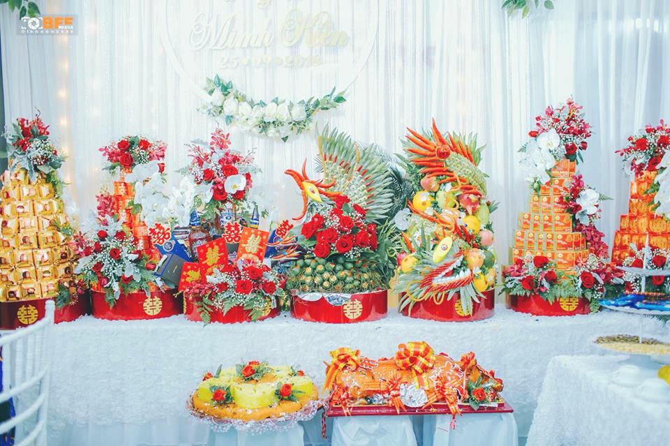응옥: 약혼식 선물상자는 부부와 가족들에게 중요한 의미를 가지고 있고 베트남의 약혼식에서 빠질 수 없는 것입니다. 지역에 따라 선물상자 수량과 예물이 달라집니다.