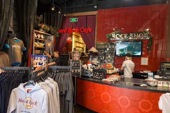 MC1:카페보다는 술집에 가깝습니다. 멋진 바이지만 낯설지는 않아요. 벽 주위에는 수십 년 된 로커의 가제트와 의복이 있어요. 의류, 안경 등을 판매하는 Hard Rock 기념품 가게도 있고요. 이 카페는 다른 나라에도 있으며, 약간 팬클럽 형태라고나 할까요?.