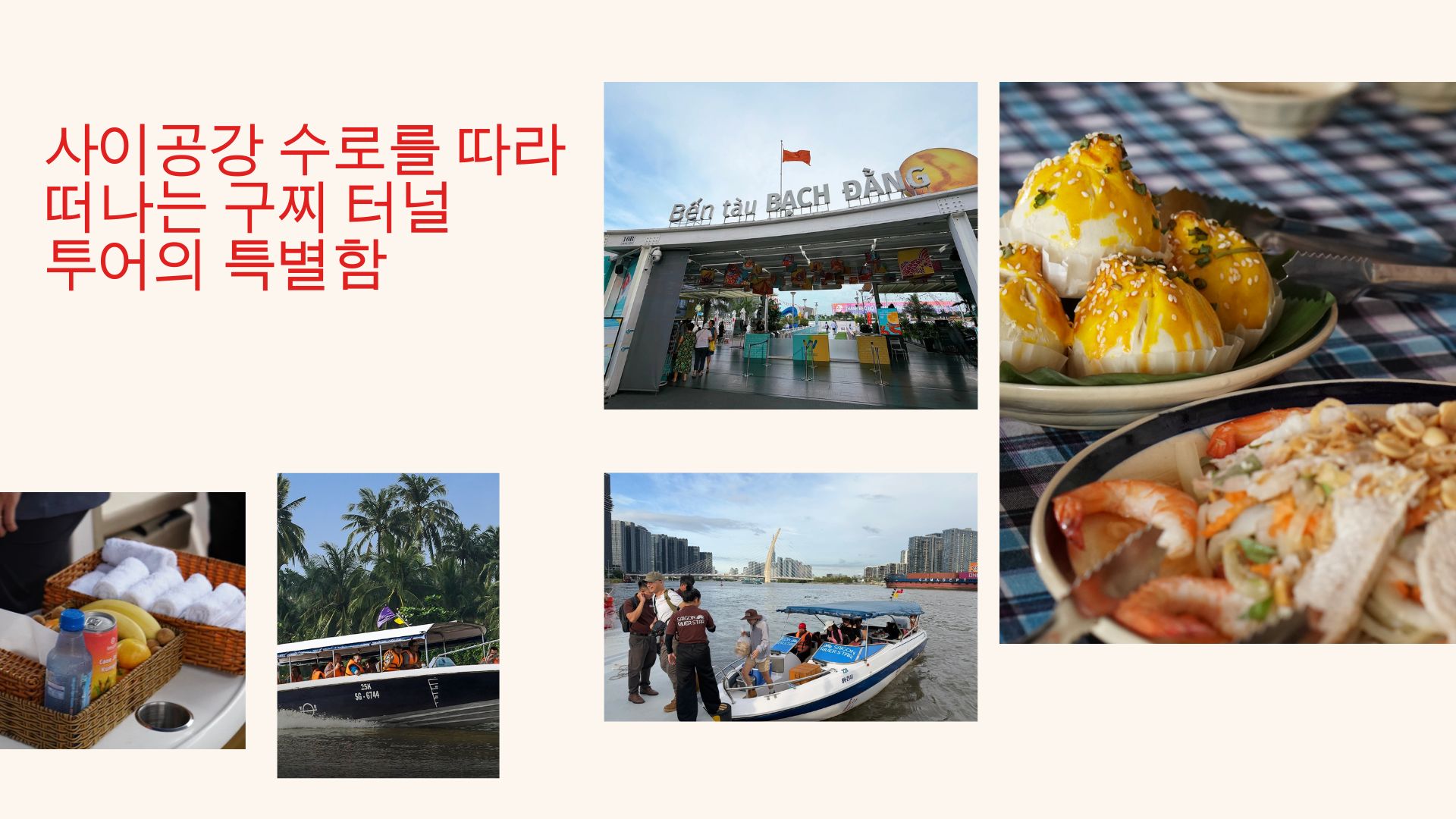응옥: 지엡 씨, 따져볼수록 이번 투어는 정말 ‘남는 게 많은’ 선택인 것 같아요. 아침 일찍 시작하긴 하지만, 서두를 필요 없이 선상에서 정갈한 식사를 대접받으며 여유롭게 출발할 수 있으니까요. 제가 가장 걱정했던 멀미나 무더위도 없다고 하니까 좋네요. 배가 워낙 안정적으로 운항하고 강바람도 시원하다면서요. 단 하루의 체험만으로도 구찌 터널의 역사를 깊이 이해하고, 현지의 진미를 즐기며, 무엇보다 오후 귀갓길까지 여유로움을 만끽할 수 있다는 점이 정말 큰 장점인 것 같습니다.