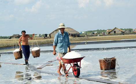 B: S.B Sharma of India looked at our photos of Ham Tan, the salt-making village in Binh Thuan province. Sharma said: “You are displaying very good pictures of a salt village. People are collecting and transporting the salt. How is this salt making done? Please, describe the process in detail.”