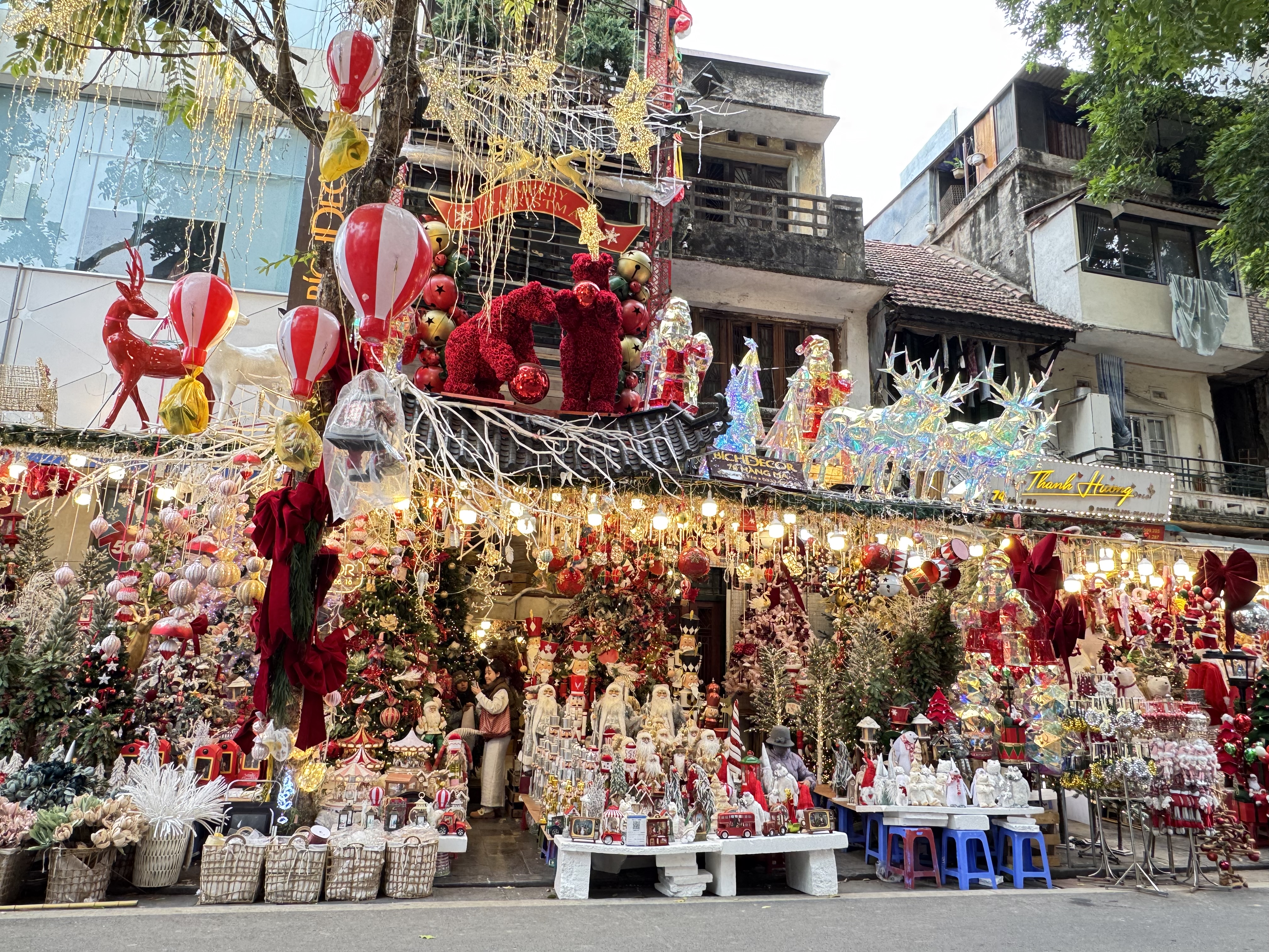 Hang Ma street sells Christmas decorative items. |