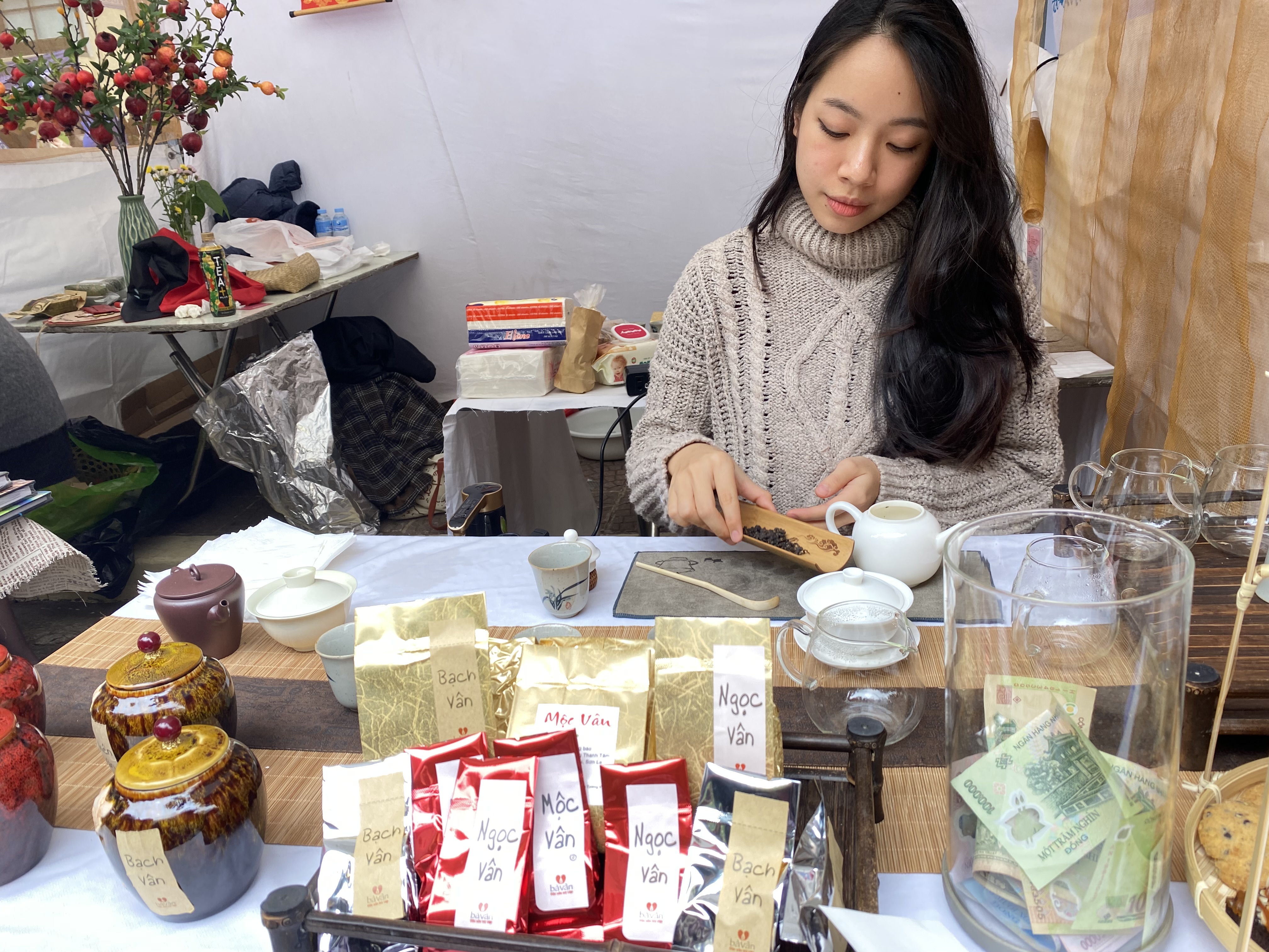 A booth introduces varieties of Vietnamese tea. |