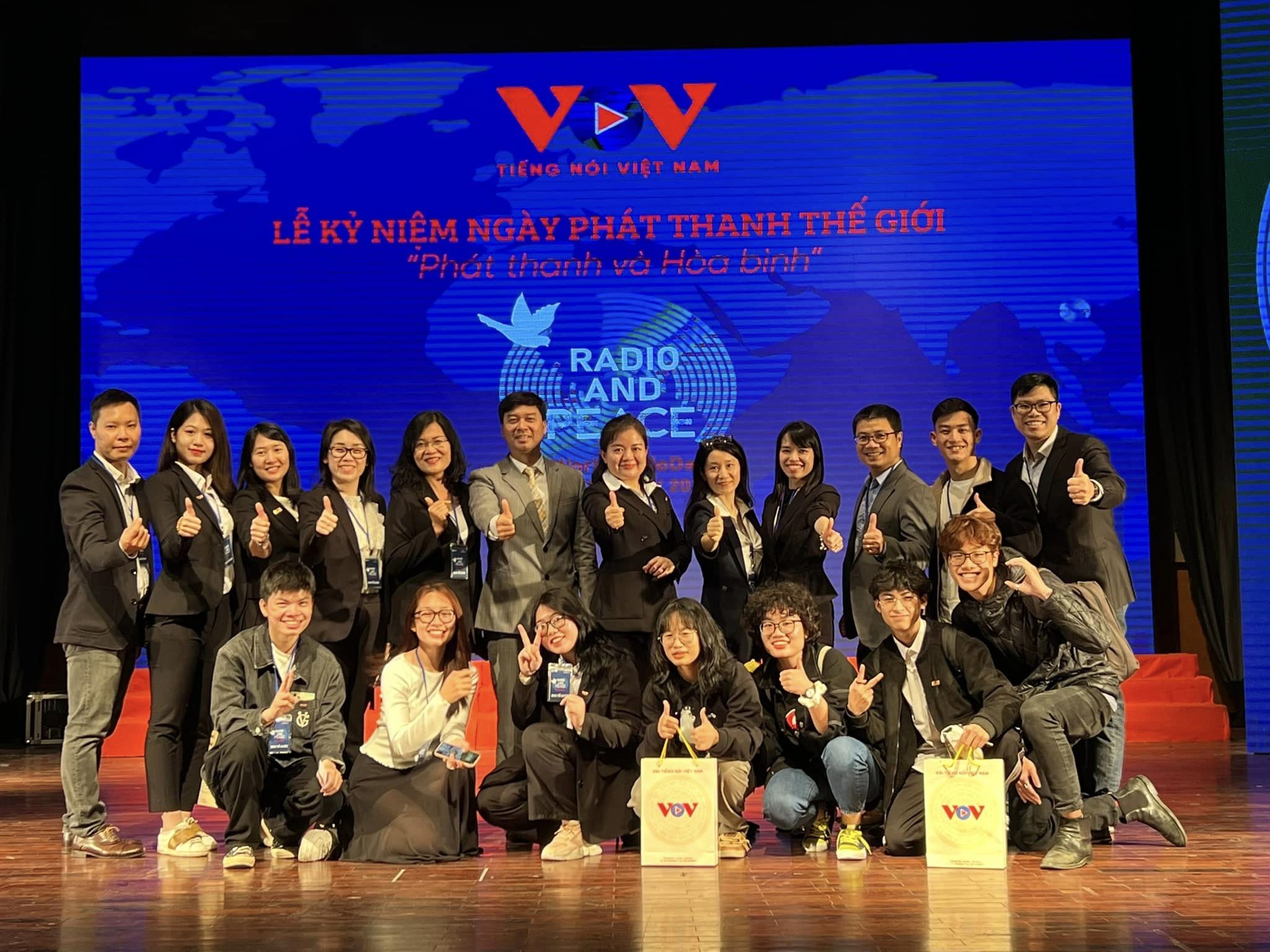 B: On Monday VOV held a "Radio and Peace" talk show to honor radio broadcasters and promote radio as a means of conflict prevention and peace-building. At the event VOV5’s broadcasters sang “The song of VOV’s overseas broadcast.”