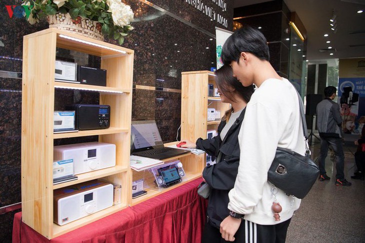 Visitors at a World Radio Day celebration event at VOV Headsquarters in Hanoi in 2020.