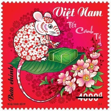 A: Also, to celebrate the Lunar New Year of the Rat 2020, the Vietnam Postal Corporation of the Ministry of Information and Communications issued a stamp collection by painter Nguyen Quang Vinh. The collection features the happy family reunion atmosphere through the images of Chung (square sticky rice) cakes, Tet (cylinder-shaped sticky rice) cakes, peach blossoms, and yellow apricot flowers and lively rats. Of note to stamp enthusiasts, the painter uses cutting layer techniques for the collection.