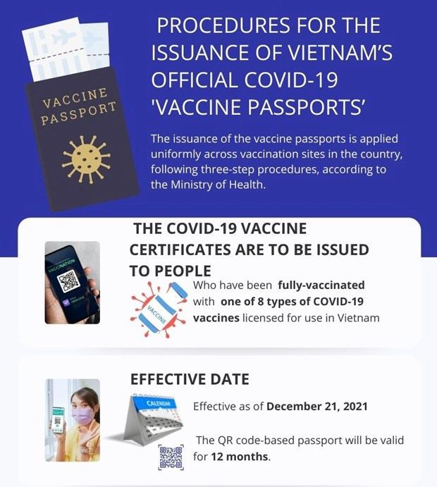 B: The Ministry of Health has announced procedures for the issuance of Vietnam’s official COVID-19 'vaccine passports’ along with passport templates.