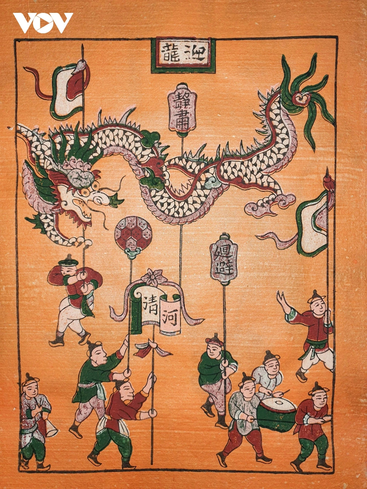Dragon procession, a typical Dong Ho painting for Tet (photo: VOV) |