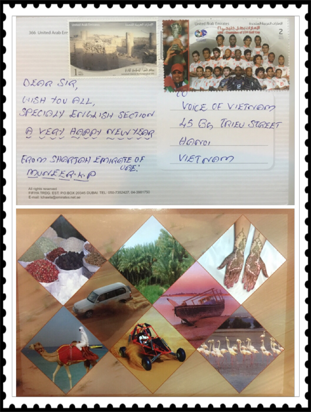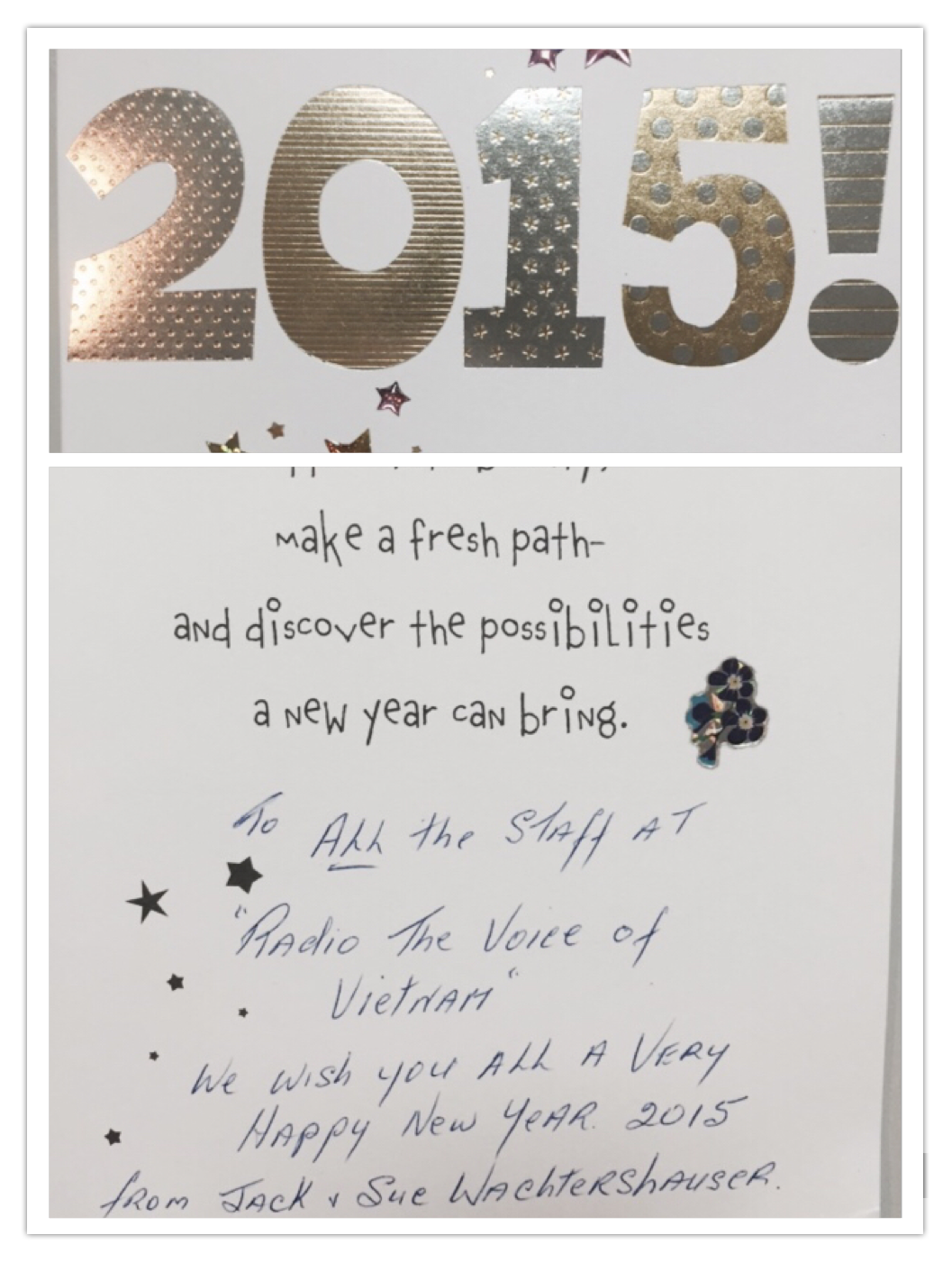 A: We were happy to receive beautiful New Year's greeting cards and 2015 calendars from Christopher Lewis, Jack and Sue Wachtershauser and Mark Scott of Australia, Muneer K.P of the UAE, and Peter Ng of Malaysia. Thank you very much. In about 3 weeks, Vietnam will celebrate the Lunar New Year.