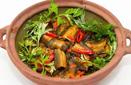 A: Nghe An’s eel soup is unforgettable. Thanks to its distinct aromatic flavor, eel soup has been a famous specialty of Nghe An province for a long time. Cooking eel soup is not difficult. Eels are cleaned, boiled and boned. If you use a piece of bamboo instead of a knife to cut up the eel and an earthen pot to cook the eel rather than a copper pan, eel soup will not be ‘fishy’.