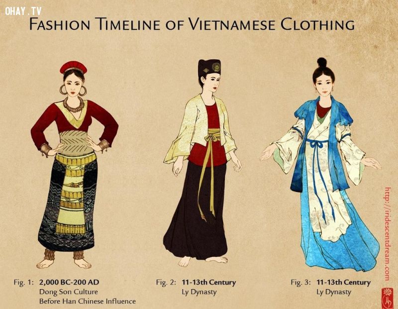 A: Images of “Ao dai” are found on Dong Son bronze drums and other artifacts dating back thousands of years. In the early 20th century, most urban Vietnamese women wore tunics made with five long flaps called “áo ngũ thân”, the five flaps symbolize the five elements of oriental cosmology: metal, wood, water, fire, and earth.