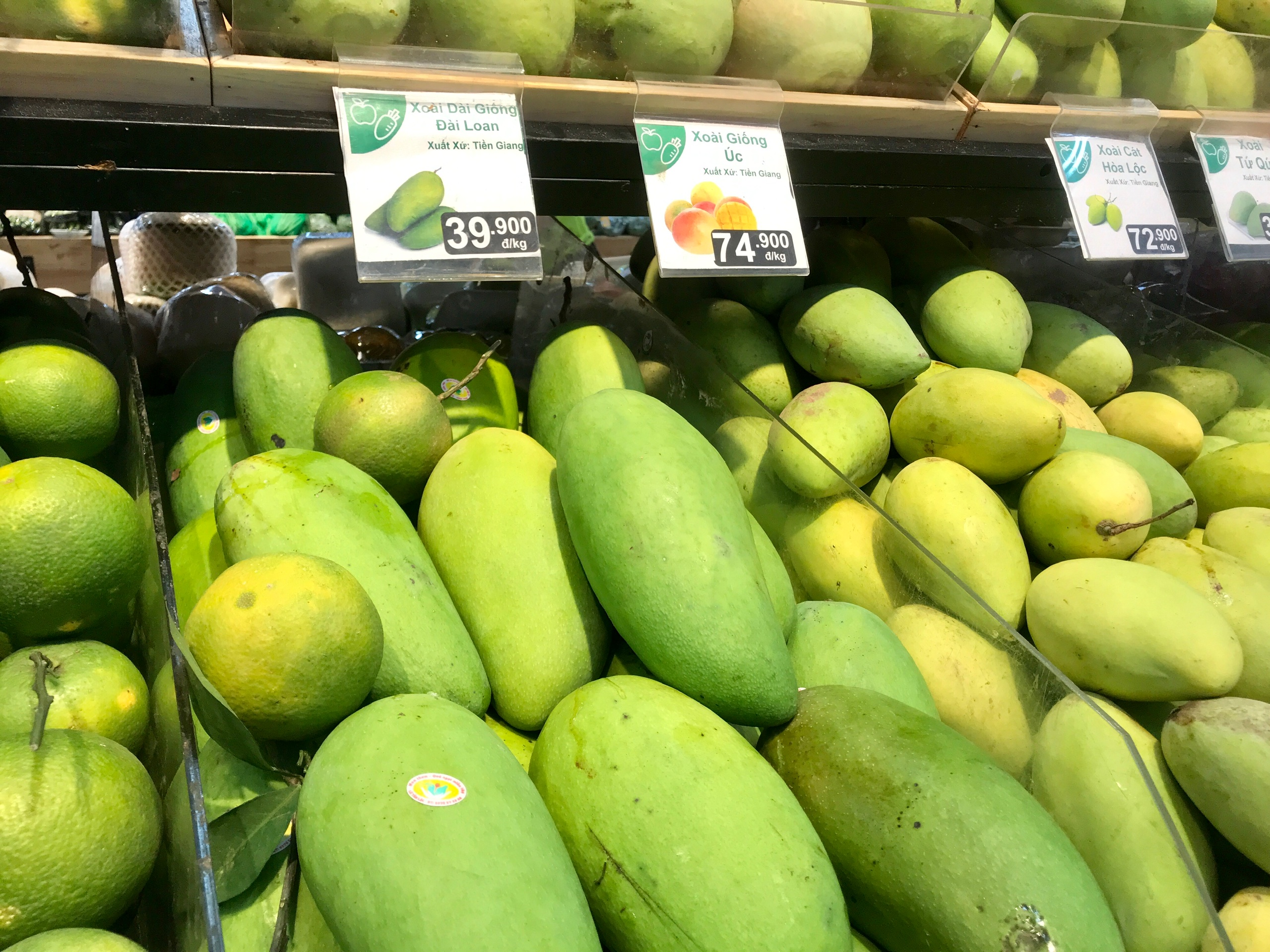 B: During peak season, the wholesale prices for these varieties range from 1.2USD per kg for the Hoa Loc to 50 cents per kg for Cat Chu mangos. The retail price of mango in the city is about two to three times the wholesale price.