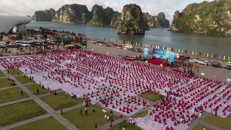 In 2020, as the Covid-19 epidemic in Vietnam under control, the Indian Embassy and Quang Ninh province organise the International Day of Yoga in Ha Long Bay. (photo: nhandan.vn)