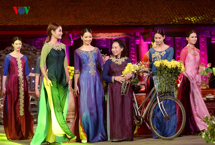 | Italian Ambassador wears an Ao dai in designer Chu La's collection themed "Tulip" |