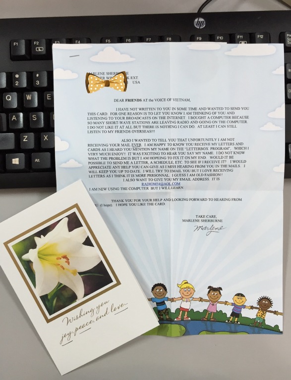B: Besides listening to the news of Vietnam and the world, he was most interested in a story about the Kitchen genie. Andrew wrote: “I think the cultural part of the show is the most interesting. I also enjoy the news and music. Thank you for sharing Vietnamese music across the world. This is my 1st QSL report to you but I will continue listening and will contact you again.”