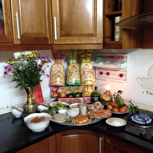 | The Kinh majority prepare offering for the Kitchen Gods in the kitchen on the 23rd day of the 12 lunar month |
