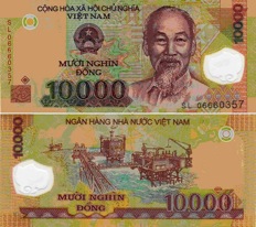 B: The front side of all bank notes contains the image of President Ho Chi Minh in addition to the words “The Socialist Republic of Vietnam”, in Vietnamese of course, the series number and the face value of the bank note in both number and text. The back side of the note shows the value of the bank note against the background of a Vietnamese symbol or typical image.
