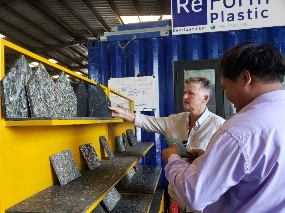 Plastic planks made from plastic waste, products of ReForm plastic waste treatment project in Hoi An City. (photo: baotainguyenmoitruong.vn) |