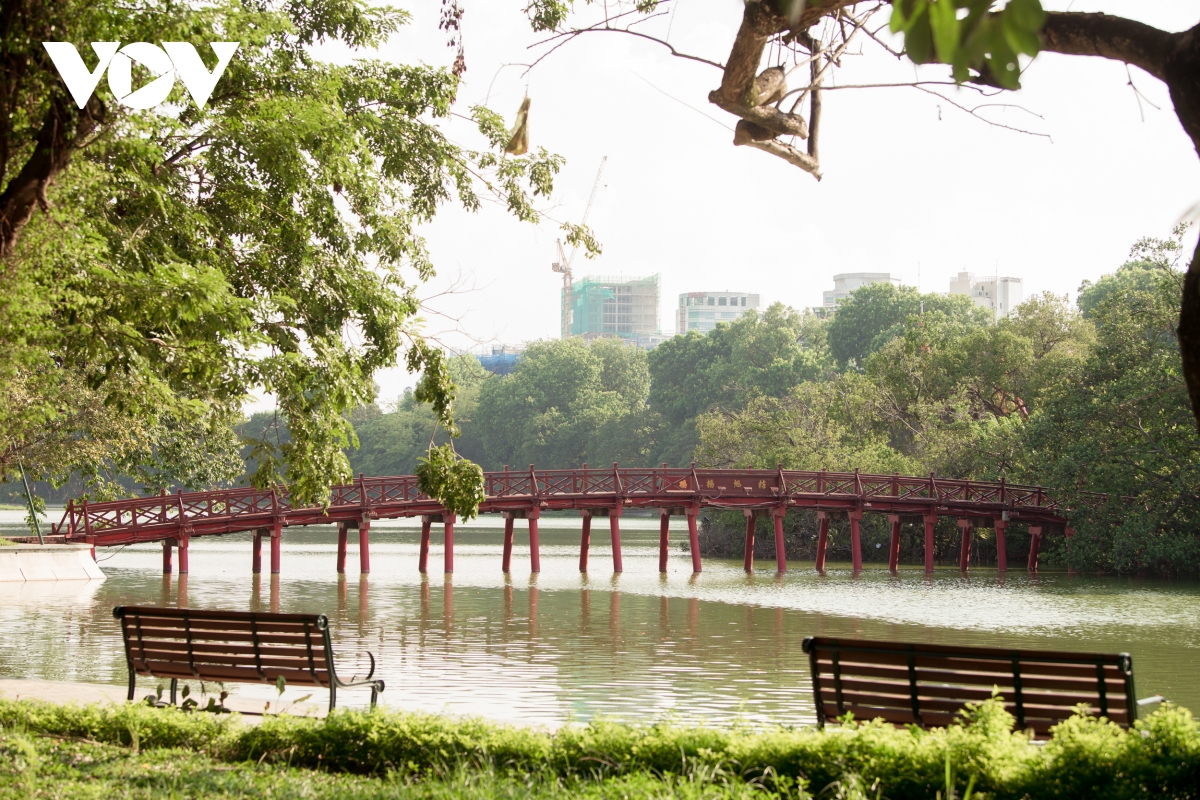 The autumn of 2021 is quieter than ever because of the COVID-19 epidemic, people avoid visiting public places or big gatherings. (photo: Hoan Kiem Lake/ VOV) |