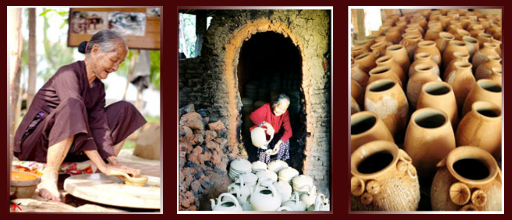 B: The village retains the simple beauty and peaceful atmosphere of yesteryear with its narrow zigzag lanes, red brick walls, and unchanging scenes of rural Vietnam. Jars and vases line the streets of the village because almost every family in the village makes pottery. It was at the beginning of the Tran dynasty in the 13th century that pottery first appeared in Phu Lang.