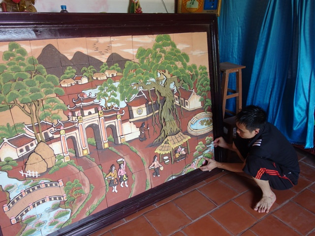 A: While Tho Ha ceramic is made of green clay, and Bat Trang ceramic is of white clay, Phu Lang ceramic is made of red clay. Phu Lang pottery products are quite varied, ranging from intricately carved devotional items like Buddha statues and urns, to simple household utensils like jars and vases. Decorative patterns on the ceramic products are also varied featuring the landscapes and daily activities of rural Vietnam. All the work is still done manually. To glaze the products, local artisans use home-made glaze and carefully control the heat of the wood fire.