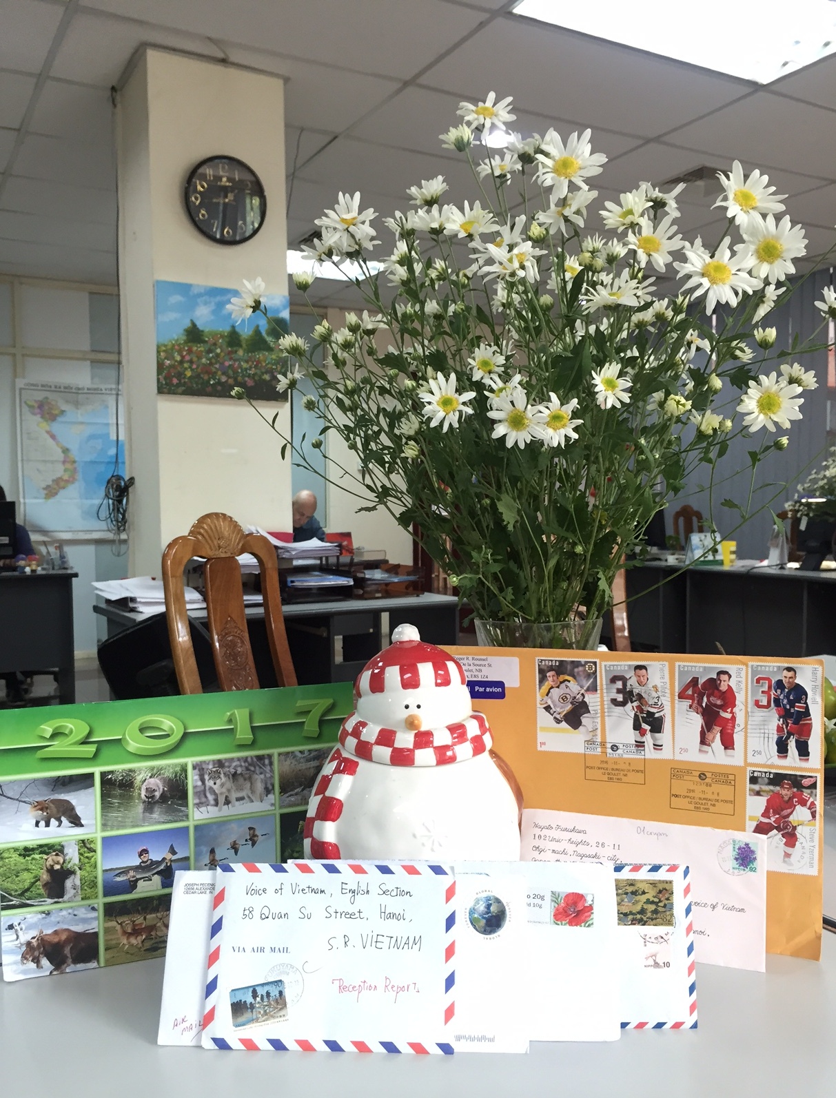 (VOVworld) - This week I’m especially impressed by a package from Roger Roussel of Canada. It’s a large envelope with 5 big stamps featuring famous Canadian hockey players. He sent us a calendar, a greeting card, and sticker notes. Thank you very much, Roger, for these lovely.