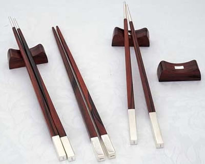 B: Vietnamese use bamboo or wooden chopsticks, which more easily grip the food. Plastic or metal chopsticks are not preferred because they are heavy and slippery. The normal size is about 25 cm long. There are often decorations at one – inlays of mother-of-pearl or lacquer motifs.