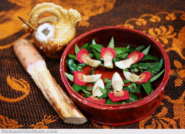 A: Many Asian countries share the custom of chewing betel. In Vietnam, the custom dates back to the reign of the Hung Kings 4,000 years ago. The custom symbolizes love, brotherhood, family, and happiness.