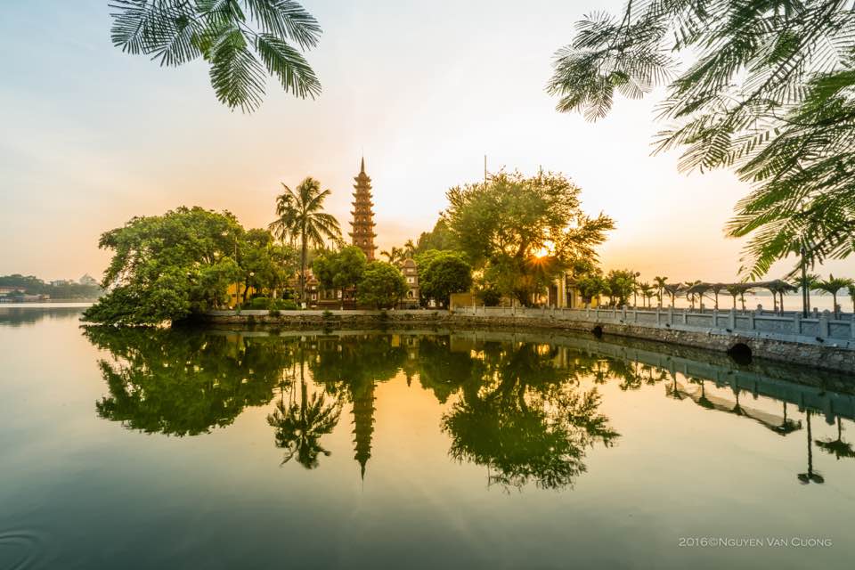 B: Another famous lake in Hanoi is West Lake. In autumn West Lake possesses a special charm. The best time to contemplate West Lake might be on an autumn morning when it’s deserted and quiet. You can take a leisure walk on the pedestrian road surrounding the lake, ride a bicycle along Thanh Nien street to Quan Thanh Temple and Tran Quoc Pagoda, or just sit silently on a rocky outcropping, look at the lake in the morning fog, and soak up the fresh atmosphere.