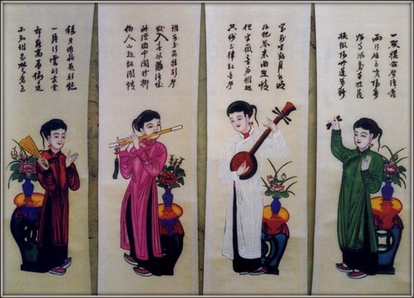 | Hang Trong's paintings of 4 ladies playing 4 types of musical instruments |
