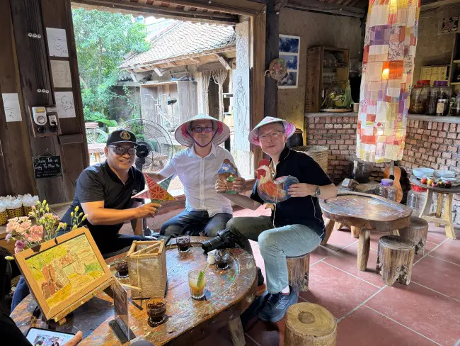 A: Oikawa said of Duong Lam village: “I got to try traditional crafts like tile painting and lantern making. The colors used in tile painting resonated with the techniques found in Japanese ink wash painting, revealing a shared aesthetic sensibility across Asian cultures. Vietnamese calligraphy, like Japanese shodō, uses brushes and emphasizes expressive brushwork. I felt a strong cultural connection through the art of writing.”