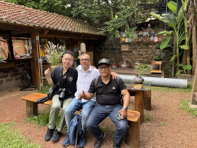 (From left) Kazuaki Oikawa of Japan, Vicentiu Daniel Gheorghe from Romania, and Rudy Hartono of Indonesia visit Duong Lam ancient village. (photo: Vincentiu Daniel Gheorghe)