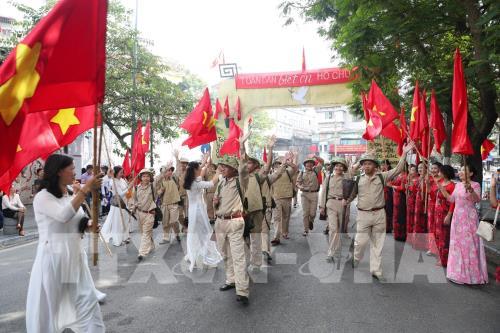 A performance recreated the scene of the liberation army arriving in Hanoi.