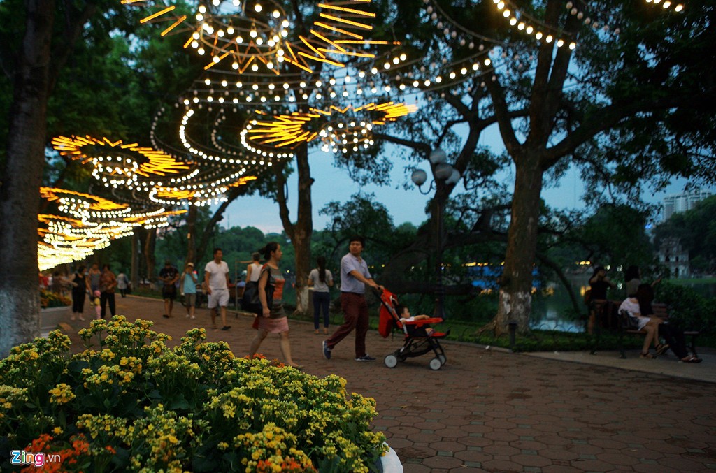 | The Hoan Kiem lake is beautifully decorated on National Day (photo: Zing) |
