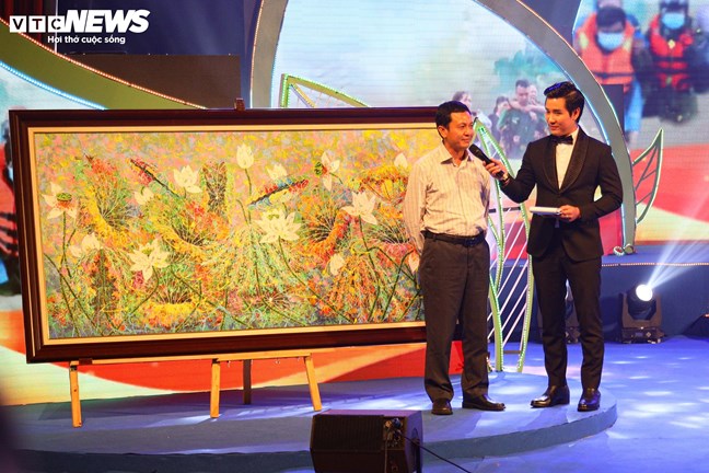 Doan Duc Thang of Acecook Vietnam Company successfully auctioned the painting for 200 million VND. |