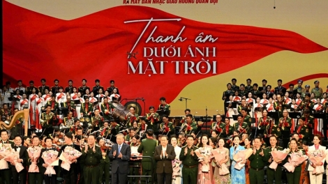 (VOVWORLD) - ຕອນຄ່ຳວັນທີ 23 ມີນາ, ຢູ່ໂຮງລະຄອນ ໂຮ່ເກືອມ, ຮ່າໂນ້ຍ ໄດ້ດຳເນີນລາຍການດົນຕີປະສານສຽງທີ່ມີຫົວຂໍ້ “ສຽງດົນຕີພາຍໃຕ້ແສງຕາເວັນ”, ເປີດຕົວກອງດົນຕີປະສານສຽງກອງທັບ ຫວຽດນາມ.