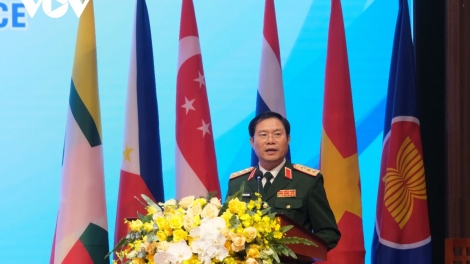 (VOVWORLD) - ວັນທີ 10 ພະຈິກ, ກອງປະຊຸມກອງບັນຊາການທະຫານບົກບັນດາປະເທດ ອາຊຽນ ຄັ້ງທີ 23 (ACAMM – 23) ດ້ວຍຫົວຂໍ້: “ທະຫານບົກ ອາຊຽນ ຮ່ວມມືຮ່ວມສຳພັນເພື່ອສັນຕິພາບ” ຖືກໄຂຂຶ້ນຢູ່ຮ່າໂນ້ຍ.